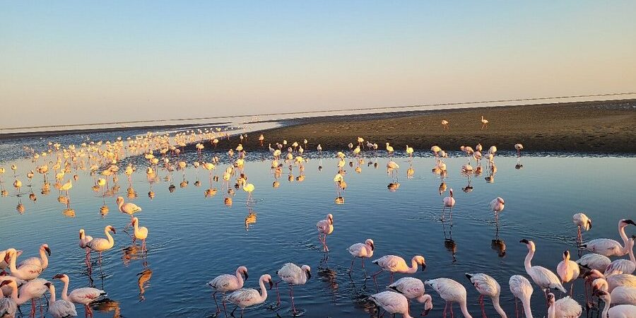 - Visit a desert lake where you may see flamingos and enjoy swimming.